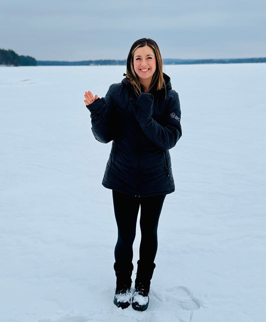 We use recyclable polyester and packaging, recycle any out-grown jackets, and donate to a local charity helping warm the children with recycled jackets! Interested? Learn how you can get involved and save on a future purchase: hello@arcticwaveco.com.